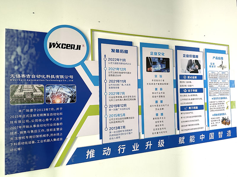無錫賽吉自動化科技有限公司始建于2013年5月。公司幾位核心骨干人員在2007年到2009年分別入行從事注塑機專用機械手研發(fā)、設計、機電、組裝、銷售與售后工作,目前企業(yè)分別有三大塊經(jīng)營項目:自動化設備(數(shù)控車床、注塑機專用取件機械手為主)設計、生產(chǎn)、銷售與服務。